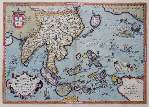 Indiae Orientalis Insularumque Adiacientium Typus, kaart door Abraham Ortelius, 1603. Afbeelding via Bornmeer.