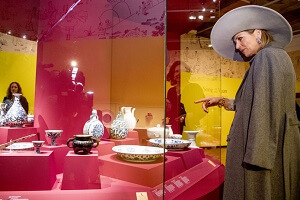 Koningin Máxima bij de opening van de tentoonstelling over keizerlijk porselein in Museum Prinsenhof